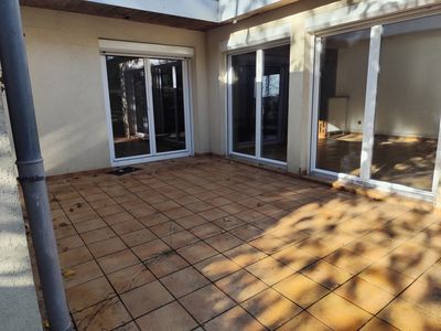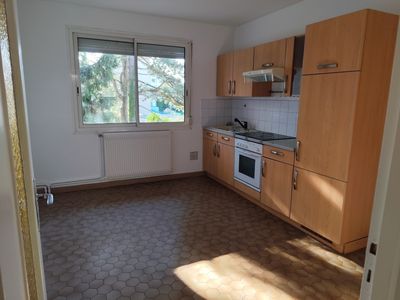 Réf. 1085 : A louer Grand F6 de 155,75 m2 au 1er et dernier étage dans maison individuelle comprenant une entrée avec placards, un grand couloir, une cuisine équipée, un salon-séjour avec cheminée donnant sur deux terrasses privatives, quatre chambres, une grande salle de bains avec baignoire et douche, un wc séparé. Appartement lumineux avec grandes baies vitrées. Jardin privatif. Chauffage individuel gaz. Stationnement à côté de la montée d'escaliers