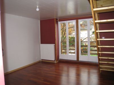 Réf. 361 : A louer F2 DUPLEX au 1er étage ancienne ferme rénovée comprenant un grand séjour lumineux avec coin cuisine équipée, un w. A l'étage : une grande chambre, une salle de bains avec baignoire et wc. Parking collectif. Charges forfaitaires : ordures ménagères, entretien communs, électricité des parties communes, chauffage, eau froide, eau chaude et électricité du logement compris dans les charges (80 € pour l'électricité 120 € pour le gaz)